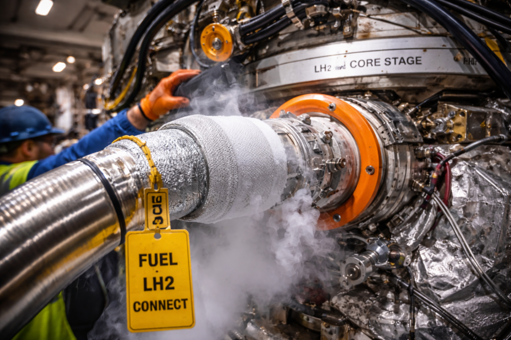 The issue emerged while cryogenic propellant was being loaded into the core stage, prompting engineers to halt the test and begin inspections. Liquid hydrogen leaks are particularly challenging due to the fuel’s low temperature and high volatility, making them a recurring concern in heavy-lift rocket operations.